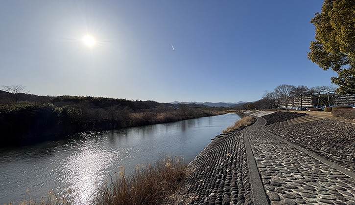 眼下には清らかで美しい多摩川の流れ、四季折々に彩りをかえるパノラマの山々。